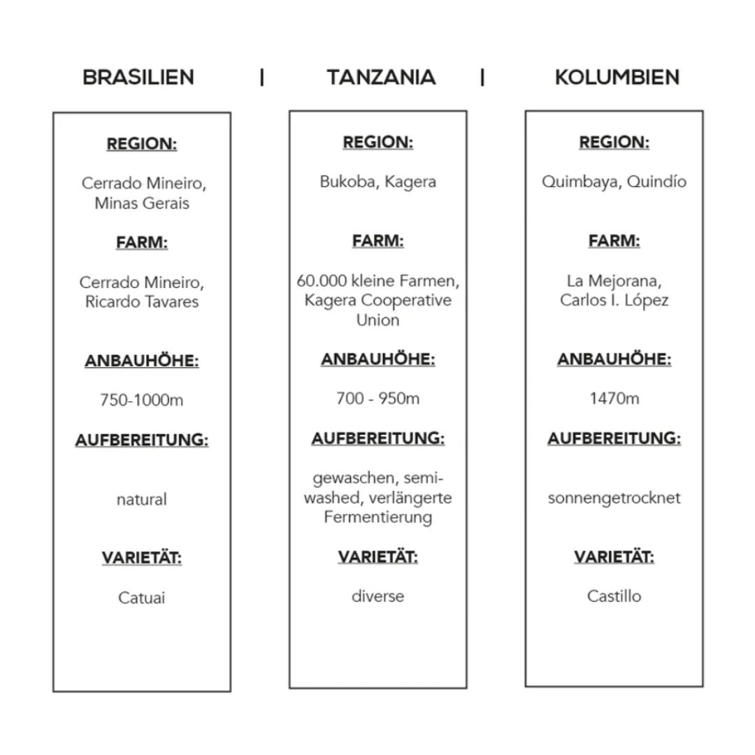 - Brasilien - Kolumbien - Tanzania