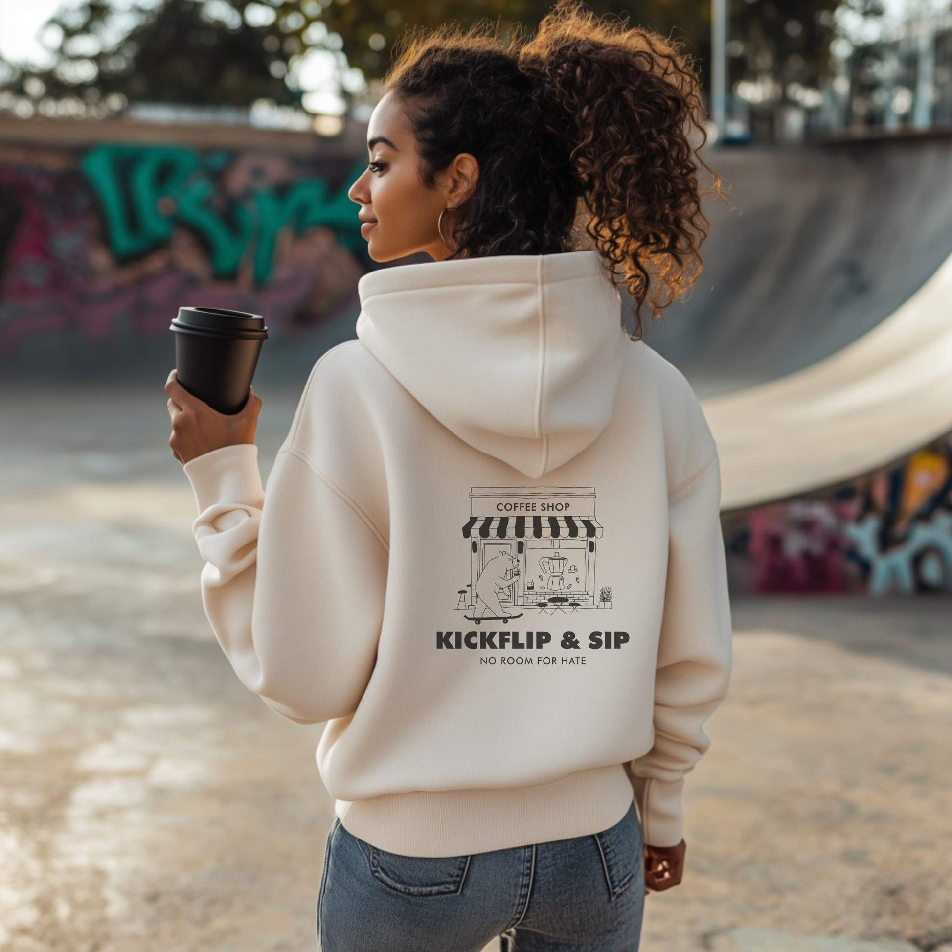 Entdecke den Kickflip & Sip Wanja Fashion Hoodie von Onkel Wanja.